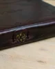 Grabado en la cubierta – Hasta 10 palabras en relieve hechas a mano con tipos de bronce antiguos. Acabado dorado vintage con detalles en negro.