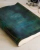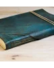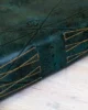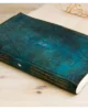 Cubierta teñida en turquesa profundo con reflejos en bronce, gofrado artesanalmente