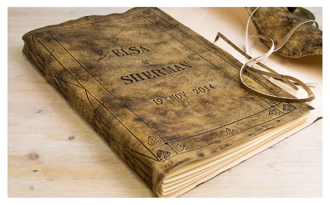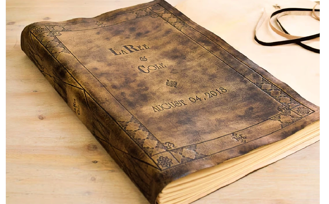 Libro artesanal B3 de cuero, personalizado con grabado, ideal como diario, álbum o libro de invitados, con papel de calidad.