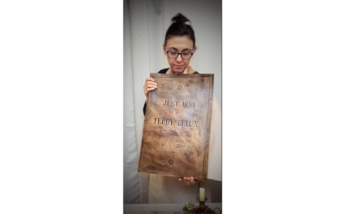 Soy un libro grande hecho para contener todas las firmas que hagan falta, estoy hecho a mano con materiales totalmente naturales, tengo un gran tamaño, B3 el cual me hace tener un gran espacio en mi interior. A parte la piel que tengo me da toques antiguos y elegantes al mismo tiempo.
