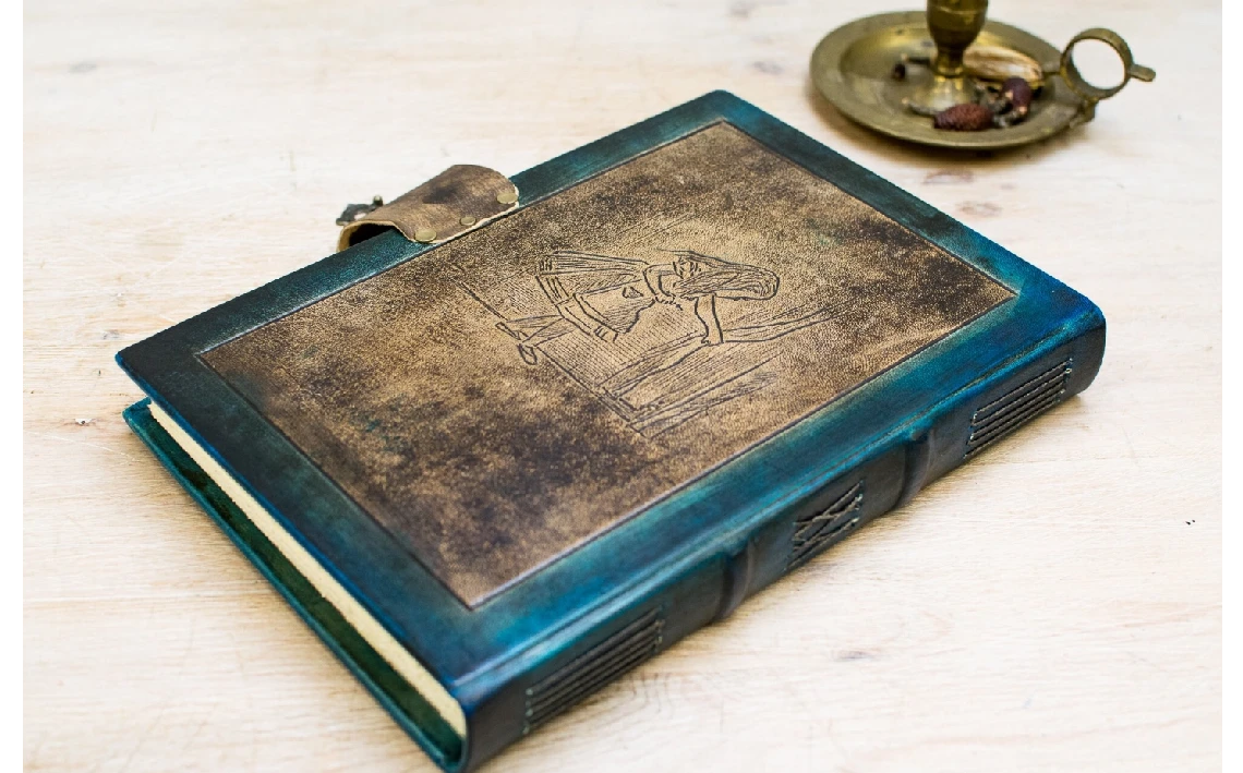 El estilo de grabado es sobrio, detallado y artesanal, único en cada libro.