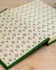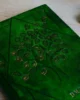 Soy un elegante cuaderno de tapa dura en formato B5, estoy totalmente fabricado a mano artesanalmente, mis tonos verdes y mi grabado de estilo Arbor Vitae me dan toques naturales y bonitos.