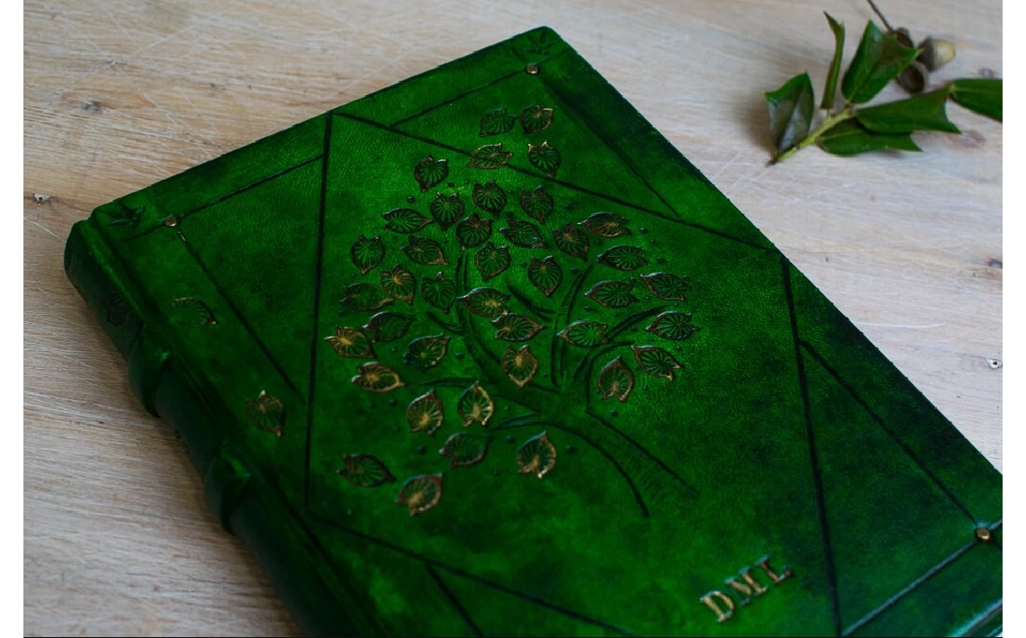 Cuaderno de arte en piel verde bosque, Arbor Vitae