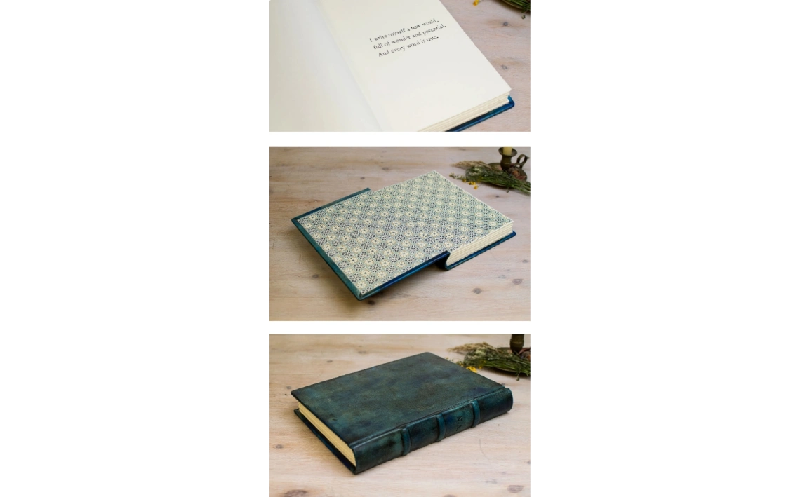 Cada libro es único: el diseño, composición de letras y gofrados siempre será irrepetible.