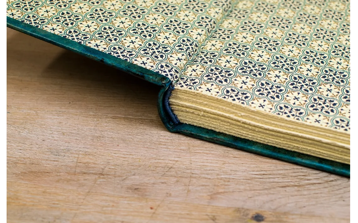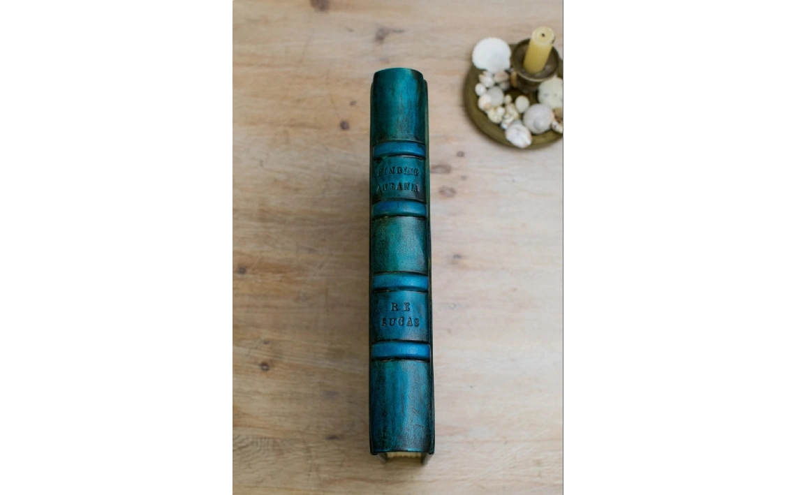 Cabezadas cosidas, nervios decorativos en el lomo.