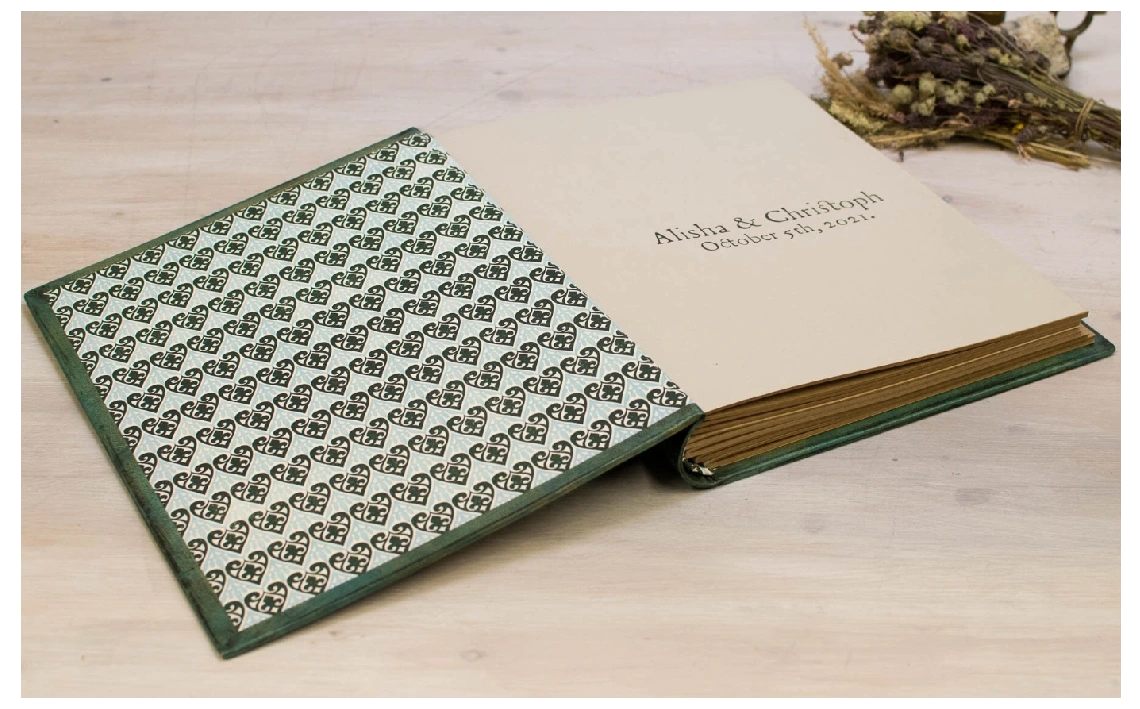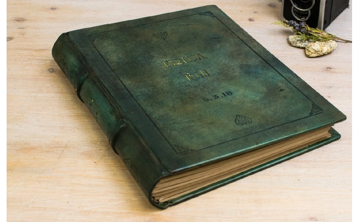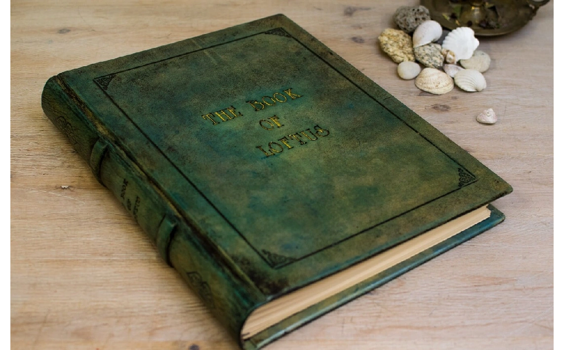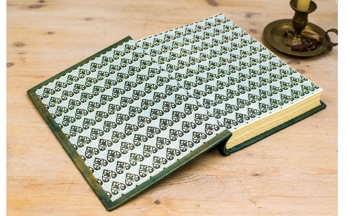 Soy un libro de estilo Lotus Blu, con tapa dura y formato B4 presumo de mis tonos verdes que ofrecen un aire natural y clásico.